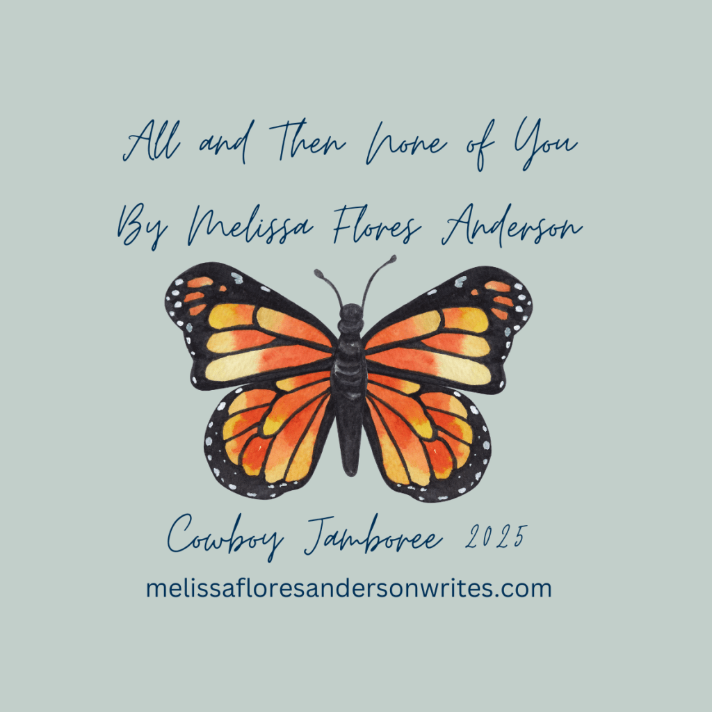 Melissa Flores Anderson is a writer of flash and long-form fiction, creative nonfiction and occasional poetry. She has been featured in more than 50 literary magazines, anthologies and reading series. Her first full-length short story collection ALL AND THEN NONE OF YOU, 21 stories and one novella, was published by Cowboy Jamboree Press on Sept. 2, 2025.